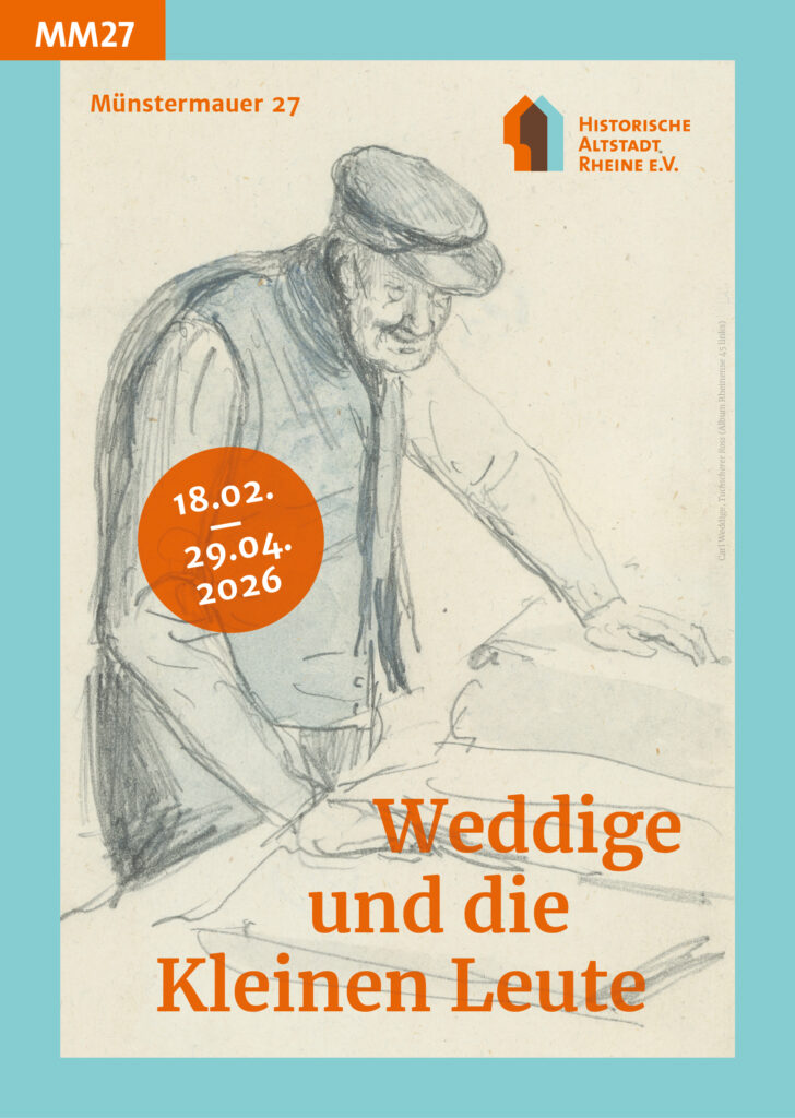 Die Ausstellung greift bekannte und weniger bekannte Skizzen aus dem „Album Rheinense“ (1852) auf. Alte und neue Fotos und Funde aus dem Stadtarchiv beleuchten das Thema der Kleinen Leute von Rheine. Daraus ergeben sich überraschende Bezüge aus 150 Jahren zur Familie Brüning in der Münstermauer 27, zur Sozialentwicklung der Stadt und zum Gegensatz von Arm und Reich.